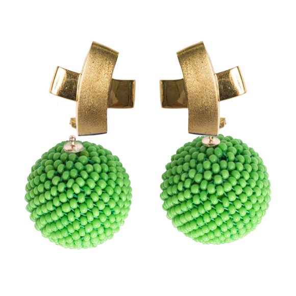 Diese Kugeln sind mit kleinen hellgrünen Perlen aus altem Glas bestickt, sie passen zu allen Ohrsteckern und Ohrclips für Wechseleinhänger.